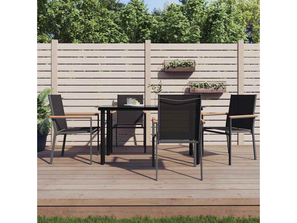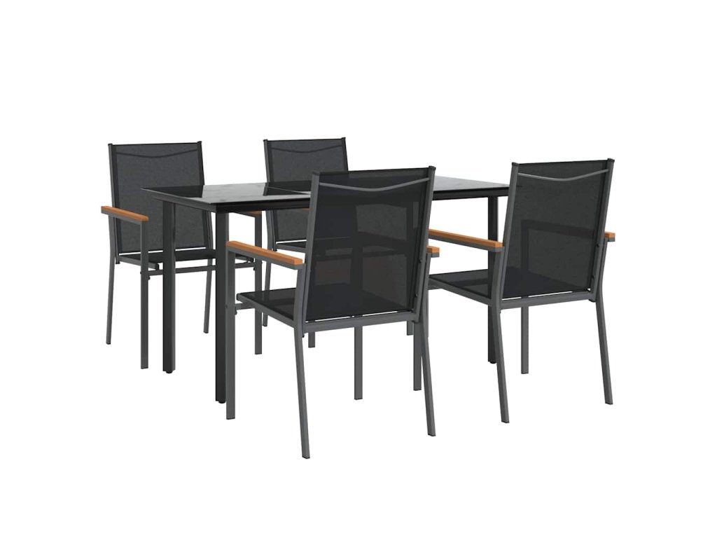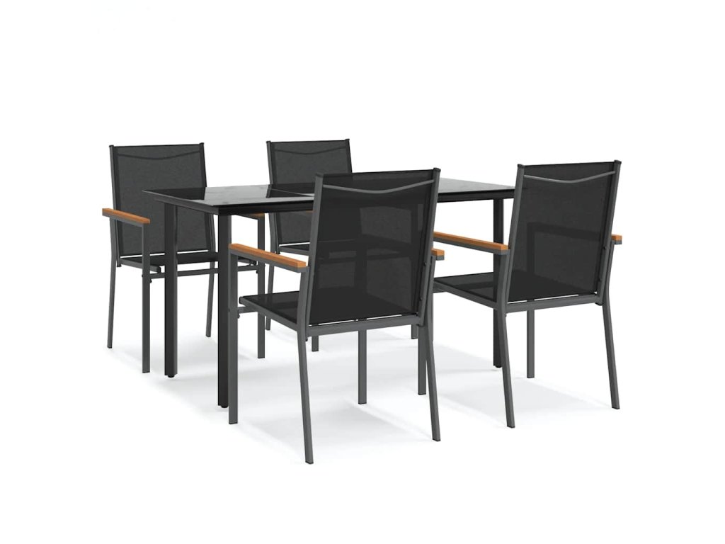 5dílný zahradní jídelní set černý textilen a ocel 3187043