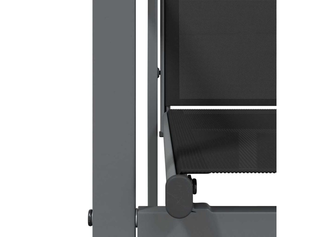 - Materiál: textilen, práškově lakovaná ocel, WPC