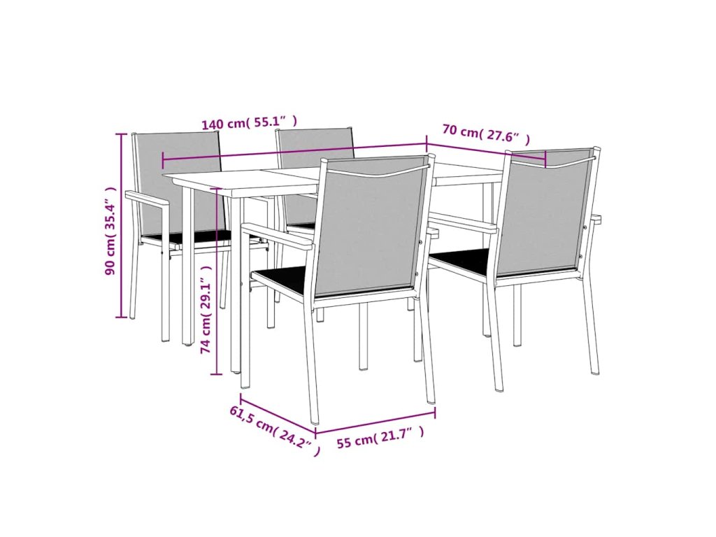 - Robustní a stabilní rám: Jelikož má ocelové rámy, je tento jídelní set robustní a stabilní pro každodenní venkovní použití.