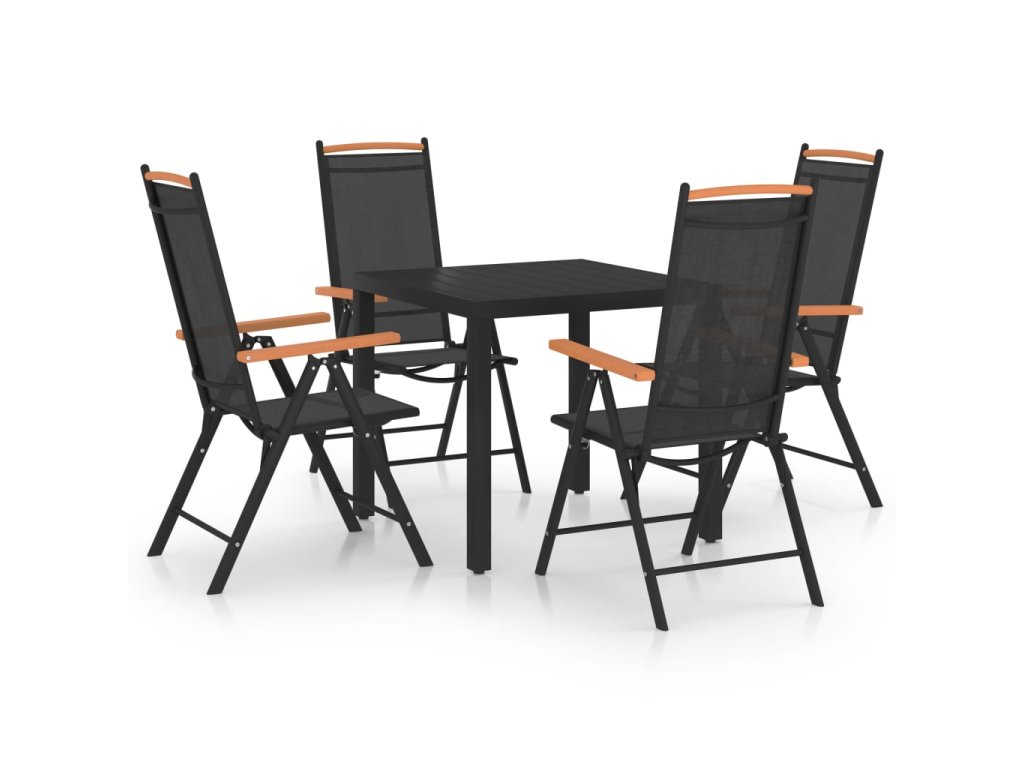 Rám z práškově lakovaného hliníku dodává nábytku na bytelnosti a prodlužuje jeho životnost. Zahradní židle mají sedáky a opěradla ušitá z na dotek měkkého textilenu. Opěradla lze navíc naklánět do 7 různých poloh, aby se vám vždy příjemně sedělo. Područky a horní příčka propůjčují židlím stylový vzhled. Křesla lze také složit, aby vám zbytečně nepřekážela, když je zrovna nepoužíváte. Stůl má desku z dřevoplastu, snadno se tedy čistí a hodí se pro venkovní použití.