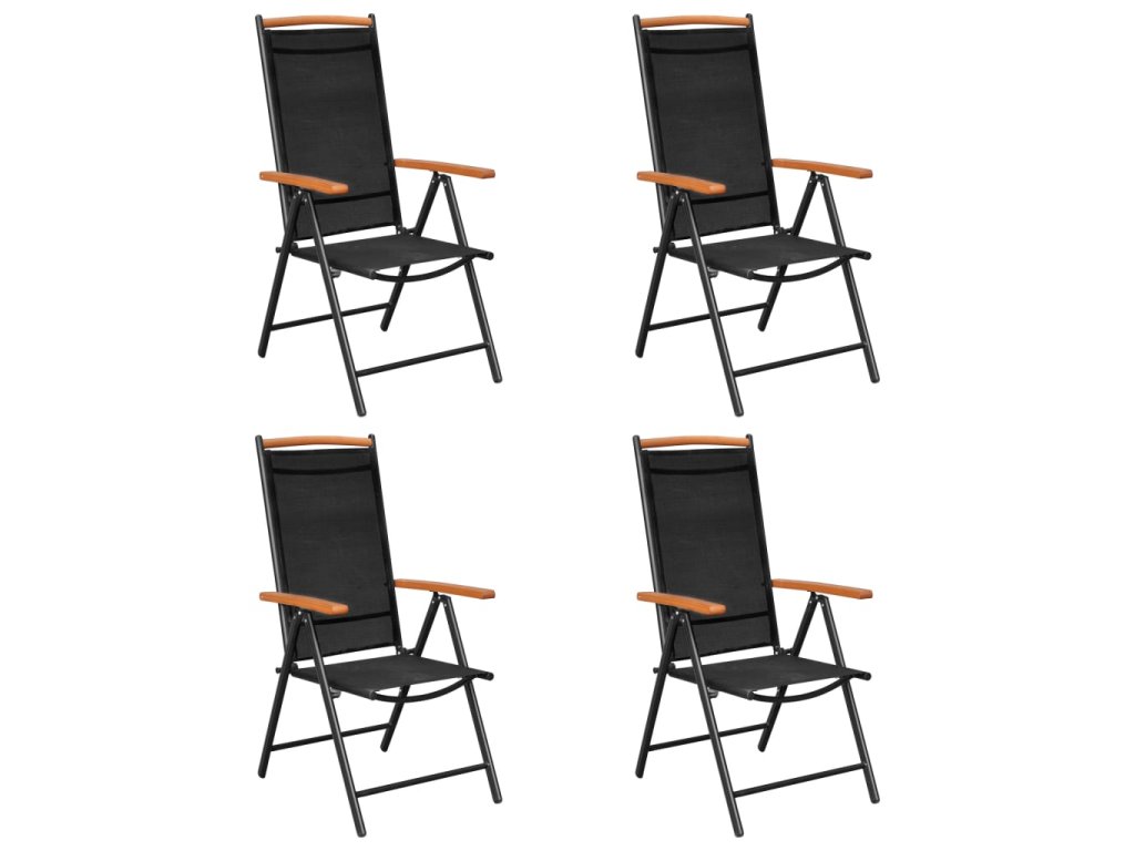Rám z práškově lakovaného hliníku dodává nábytku na bytelnosti a prodlužuje jeho životnost. Zahradní židle mají sedáky a opěradla ušitá z na dotek měkkého textilenu. Opěradla lze navíc naklánět do 7 různých poloh, aby se vám vždy příjemně sedělo. Područky a horní příčka propůjčují židlím stylový vzhled. Křesla lze také složit, aby vám zbytečně nepřekážela, když je zrovna nepoužíváte. Stůl má desku z dřevoplastu, snadno se tedy čistí a hodí se pro venkovní použití.