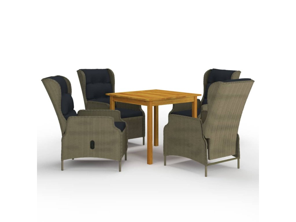 Jídelní stůl je zhotovený z masivního akáciového dřeva s olejovaným povrchem, takže je stabilní, odolný a nenáročný na údržbu. Zahradní židle mají rám z práškově lakované oceli, opletený klimaticky odolným kulatým PE ratanem, jsou tudíž odolné a snadno se čistí. Hustě polstrované podušky vám při odpočinku zaručí mimořádný komfort. Jejich potahy jsou opatřené zipem, abyste je mohli bez námahy stáhnout a oprat. Židle disponují mechanismem s plynovým pístem, umožní vám tedy také nastavit opěradlo do různých poloh. Stačí stisknout tlačítko na boku a opěradlo se sklopí do pohodlné pozice vleže. Vzhledem k lehké konstrukci lze jídelní židle jednoduše přesouvat, kam potřebujete.