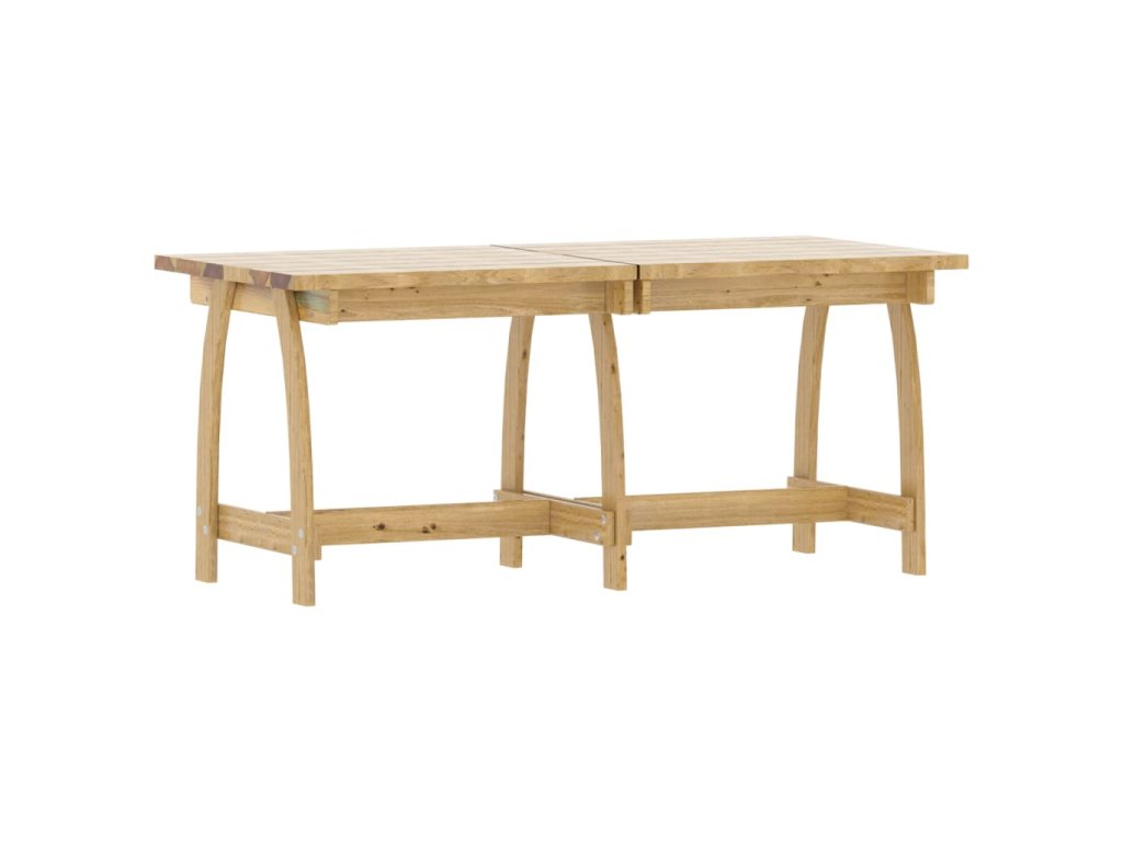 Tento jídelní set ze zeleně impregnovaného borového dřeva je velmi pevný, dlouho vydrží a je odolný vůči korozi. Je ideální volbou pro příjemně strávené chvíle u večeře s rodinou nebo přáteli v romantické zahradě na venkově nebo u idylického zahradního jezírka. Vezměte prosím na vědomí, že dřevo je přírodní produkt a může vykazovat nedokonalosti.