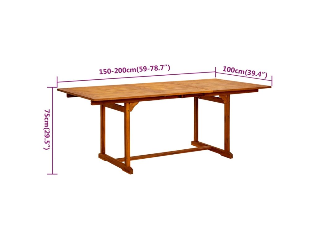 - Rozměry stolu: (150–200) x 100 x 75 cm (D x Š x V)