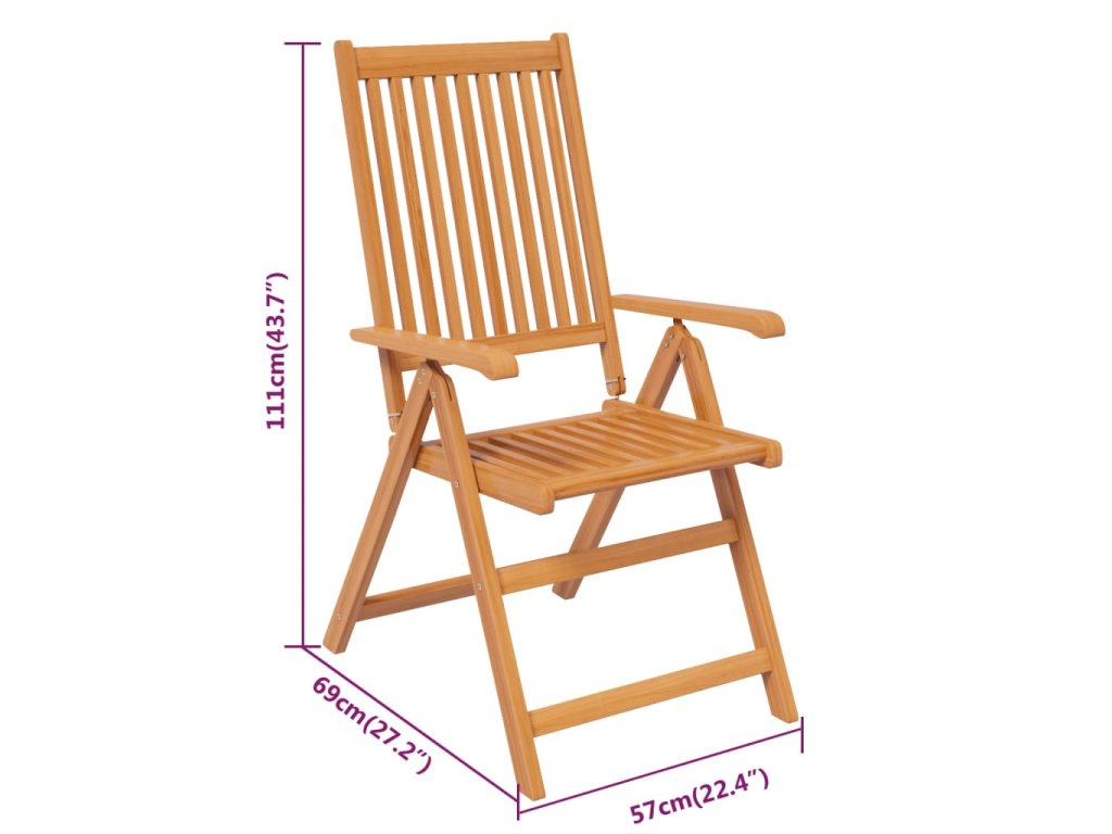 - Nastavitelná a skládací židle: Zahradní židli lze nastavit do 5 poloh, a tak vám při sezení zajistí optimální pohodlí. Pokud jídelní židle právě nepoužíváte, můžete je složit, aby vám zbytečně nepřekážely.