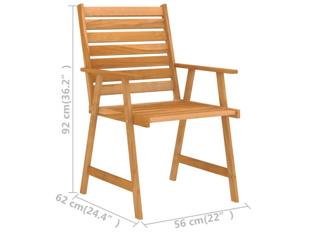 Jídelní set je vyrobený z masivního akáciového dřeva, které výborně odolává klimatickým vlivům a hodně toho vydrží. Olejová povrchová úprava propůjčuje dřevu bohatý, hřejivý odstín a umožňuje snadné čištění navlhčeným hadříkem.