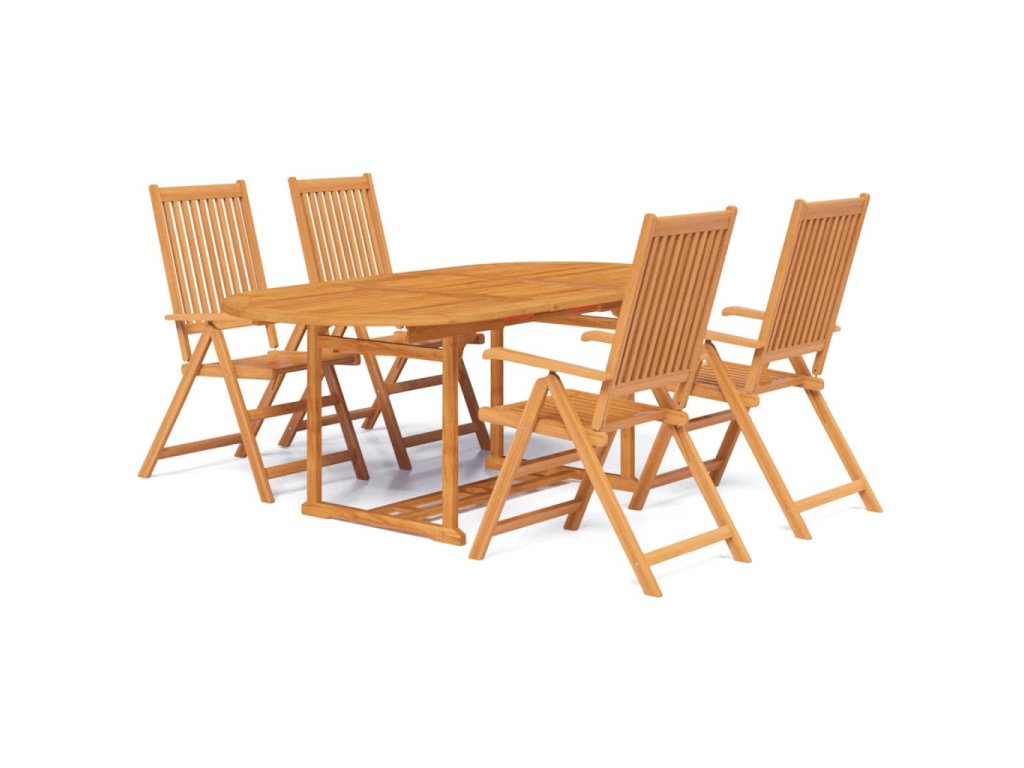 Jídelní sestava je vyrobená z masivní akácie, tropického tvrdého dřeva, které výborně vzdoruje vlivům počasí a vydrží vám sloužit po dlouhá léta. Olejem natřený povrch se snadno čistí navlhčeným hadříkem. Stůl se speciálním designem lze rozšířit až o 200 cm, když potřebujete extra místo. Židli lze upravit do 5 různých poloh, aby se vám pohodlně sedělo za všech okolností. Když je právě nepoužíváte, lze židle složit a ušetřit místo.
