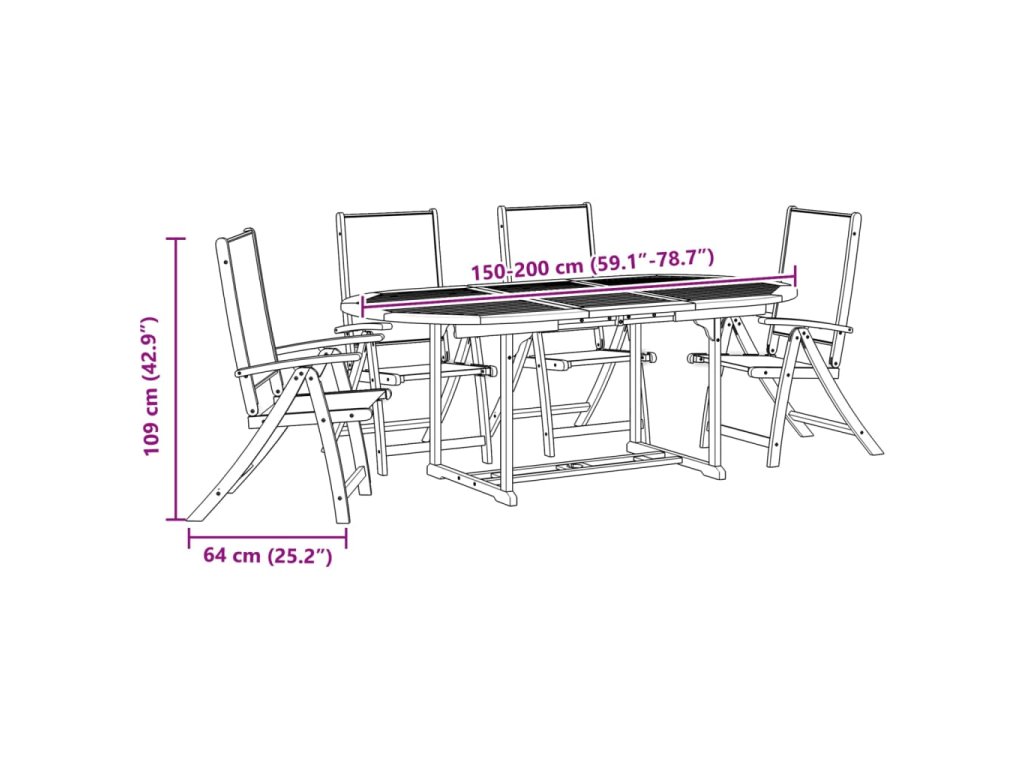 5dílný zahradní jídelní set masivní akáciové dřevo a textilen 3279286