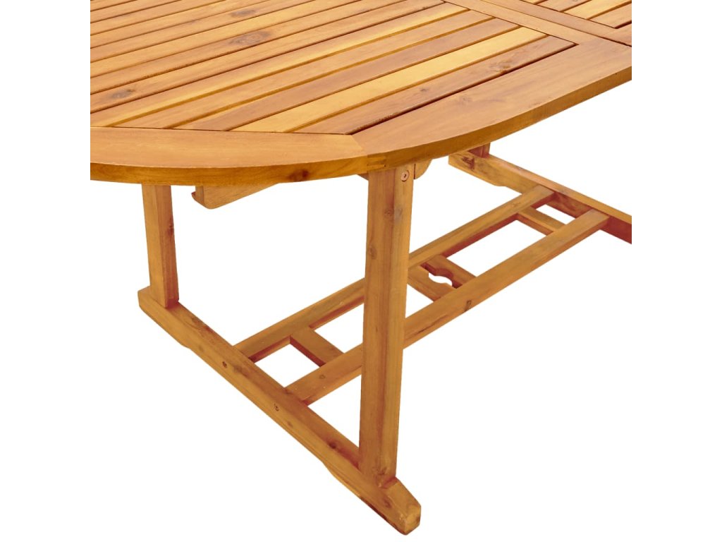 - Masivní akáciové dřevo: Venkovní jídelní set je vyrobený z masivního akáciového dřeva. Masivní akáciové dřevo je nádherný přírodní materiál. Akáciové dřevo je tropické tvrdé dřevo, které má hustou strukturu a je pevné a odolné.