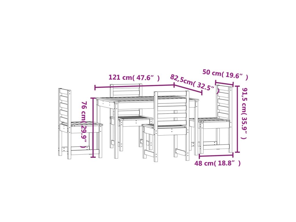 5dílný zahradní jídelní set masivní borové dřevo 3154683