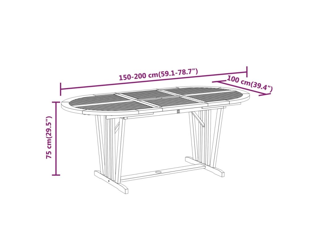 - Rozměry stolu: (150–200) x 100 x 75 cm (Š x H x V)