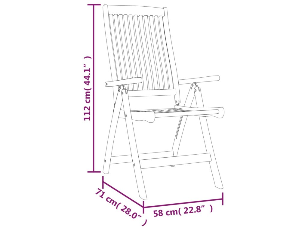- Polohovací dřevěné židle: Zahradní židle mají zaoblené sedáky a područky. Opěradlo lze navíc nastavit do 5 poloh, takže si vždy najdete tu nejpohodlnější.