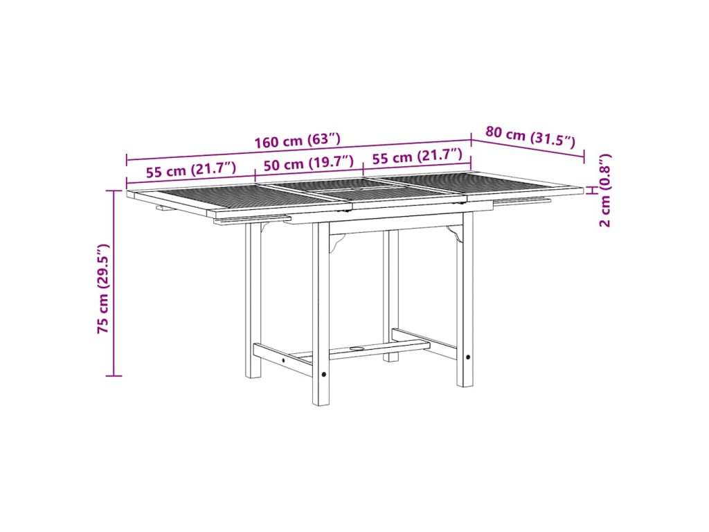 Nábytek odolává vlhkosti a hmyzu. Je ošetřený krásnou povrchovou úpravou, která dřevu dává teplou barvu. Jídelní stůl se speciálním designem je možné rozšířit až o maximálně 160 cm, pokud je zapotřebí více místa. Má také otvor pro deštník, který poskytuje ochranu před sluncem. Židle můžete složit, když je nepoužíváte. Poskytnou vám pohodlí a skvělé místo, kde můžete trávit čas s rodinou a přáteli. Tuto sadu lze navíc snadno čistit vlhkým hadříkem.
