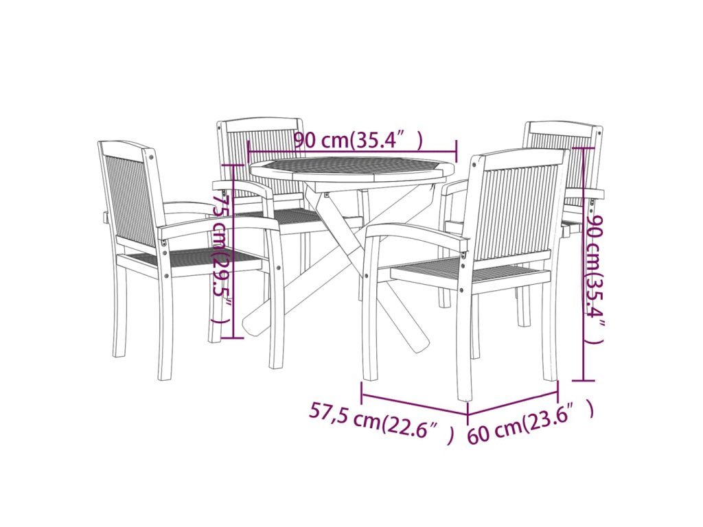 5dílný zahradní jídelní set masivní teakové dřevo 3073201