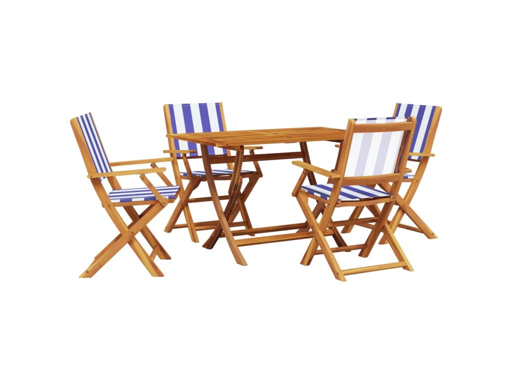5dílný zahradní jídelní set modrý a bílý textil a masivní dřevo 3281705