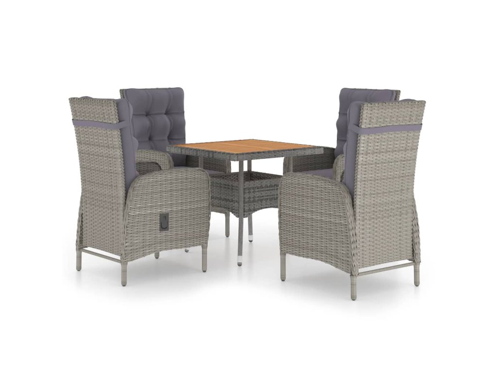5dílný zahradní jídelní set polyratan a akáciové dřevo šedý 3058525