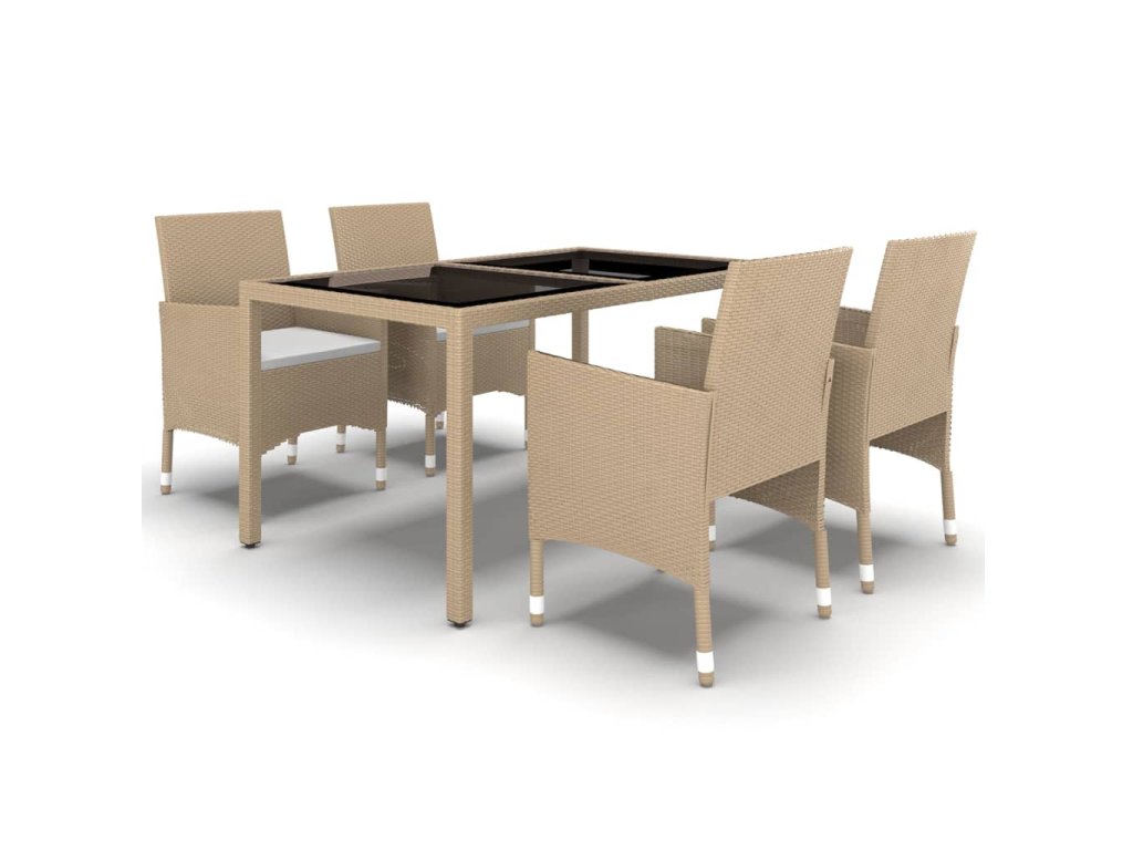 5dílný zahradní jídelní set polyratan a tvrzené sklo béžový 3058420