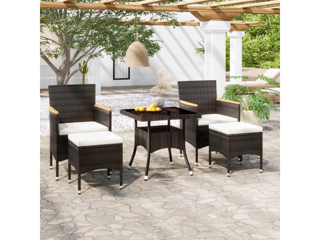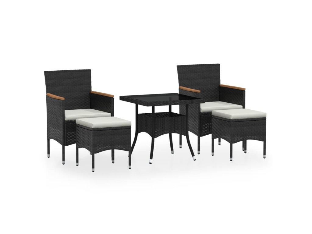 5dílný zahradní jídelní set polyratan a tvrzené sklo černý 3058334