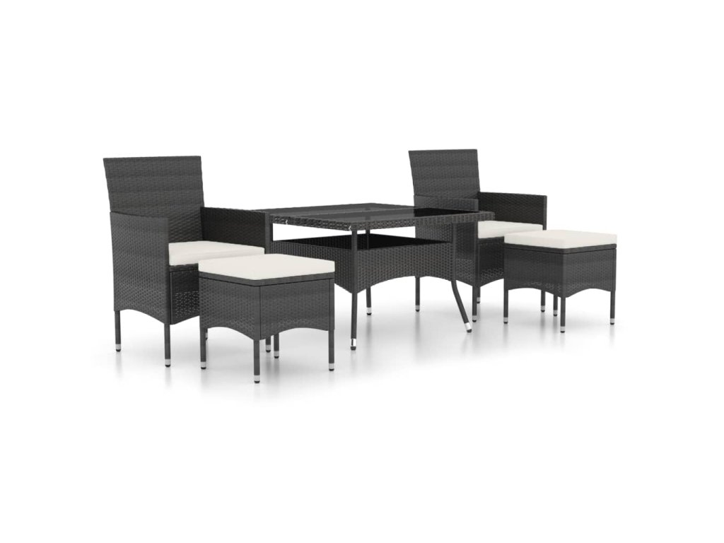 5dílný zahradní jídelní set polyratan a tvrzené sklo černý 3058348