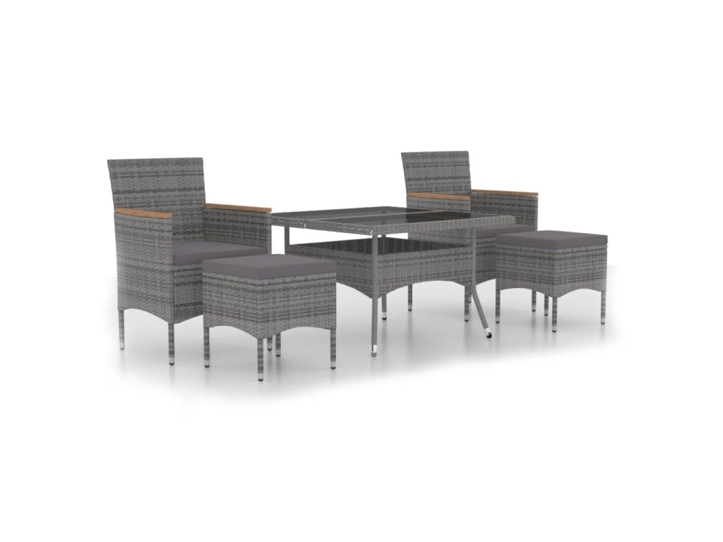 5dílný zahradní jídelní set polyratan a tvrzené sklo šedý 3058355