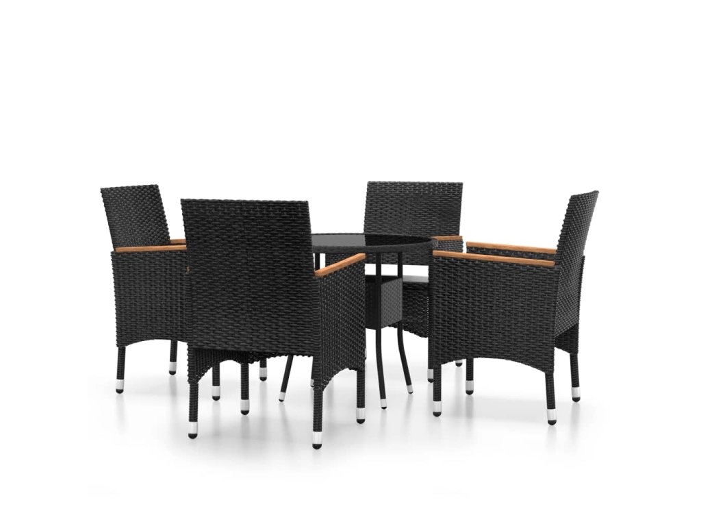 Zahradní jídelní set má práškově lakovaný ocelový rám opletený polyratanem, takže je velmi odolný. Stolní deska je zhotovena z tvrzeného skla, což usnadňuje její čištění. Hustě polstrované podušky vám navíc při sezení poskytnou maximální pohodlí.