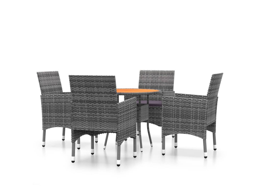 5dílný zahradní jídelní set polyratan šedý 3058493