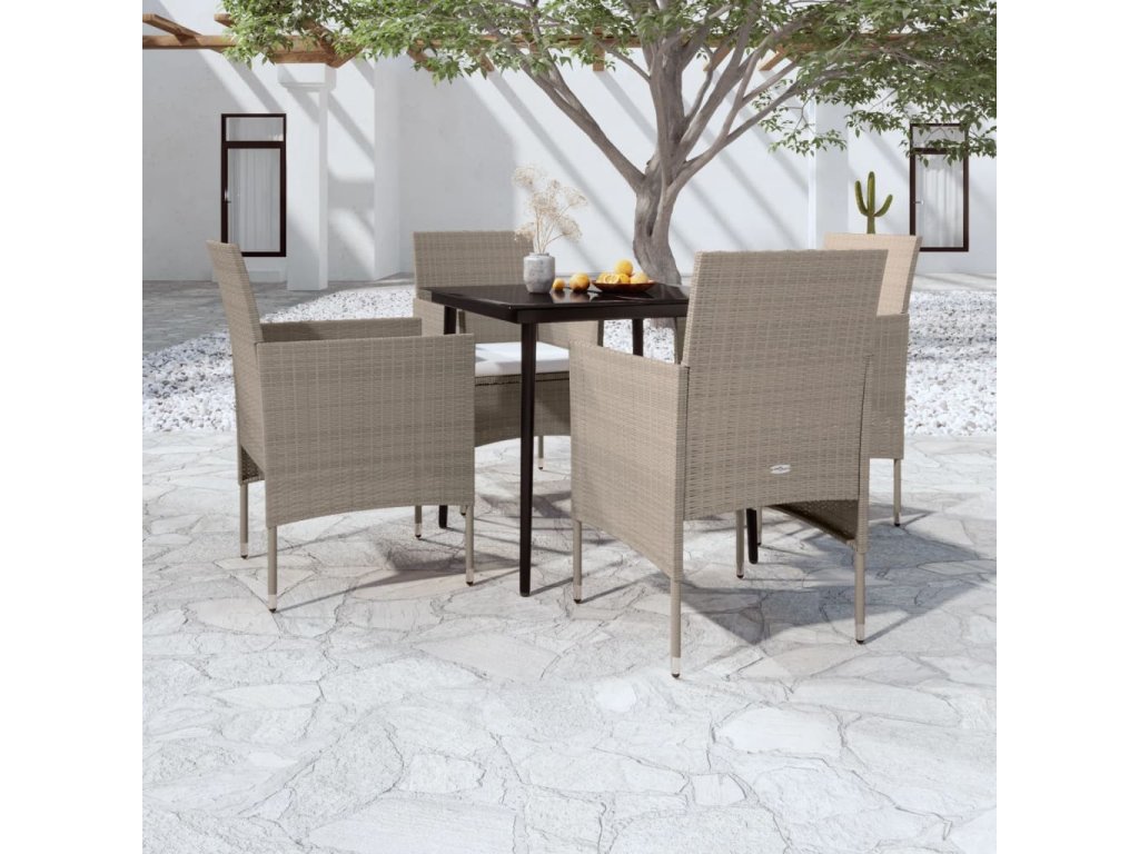 5dílný zahradní jídelní set s poduškami béžový a černý 3099318