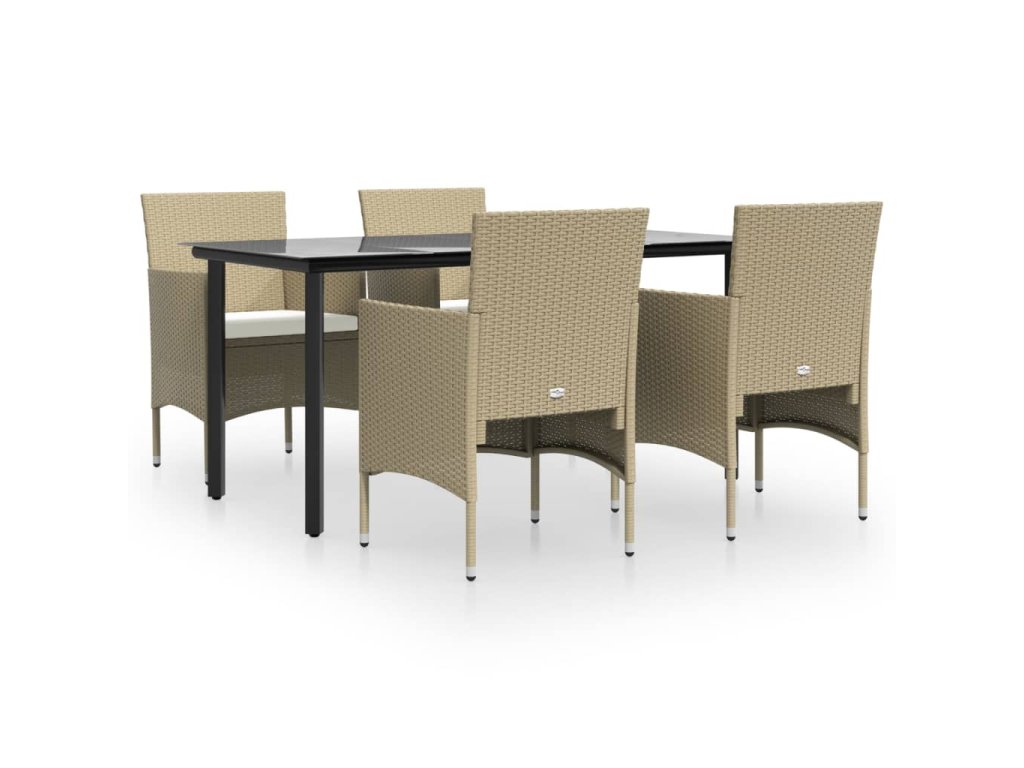 5dílný zahradní jídelní set s poduškami béžový a černý 3156608