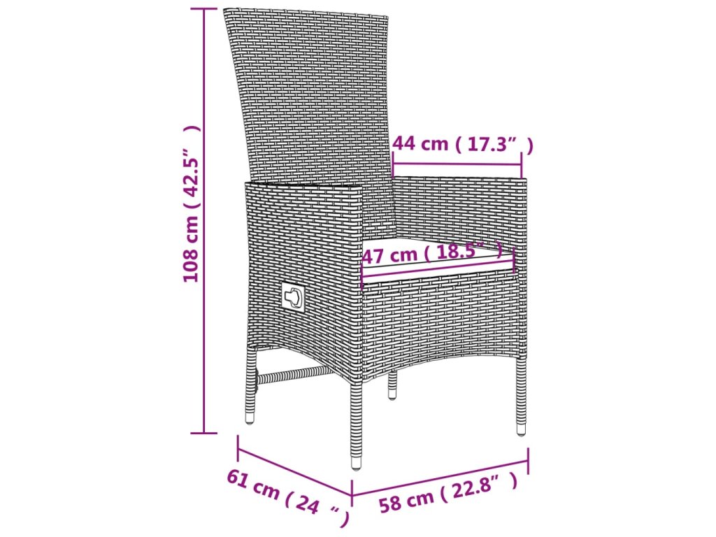 - Materiál: PE ratan, práškově lakovaná ocel, masivní akáciové dřevo s olejovou povrchovou úpravou