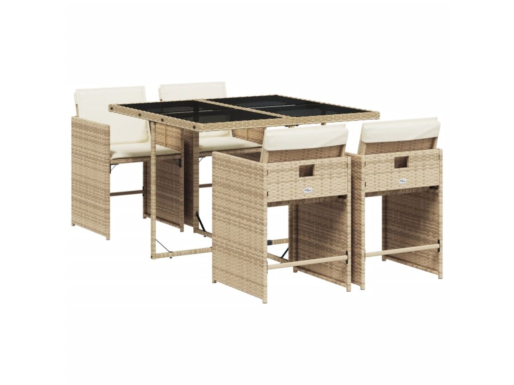 5dílný zahradní jídelní set s poduškami béžový polyratan 3211078