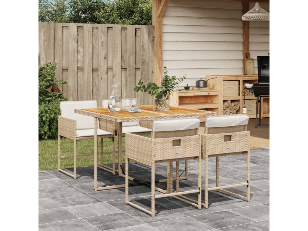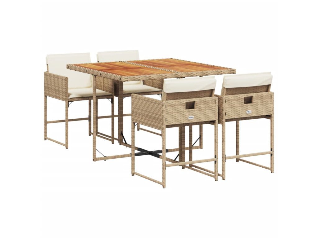 5dílný zahradní jídelní set s poduškami béžový polyratan 3211264