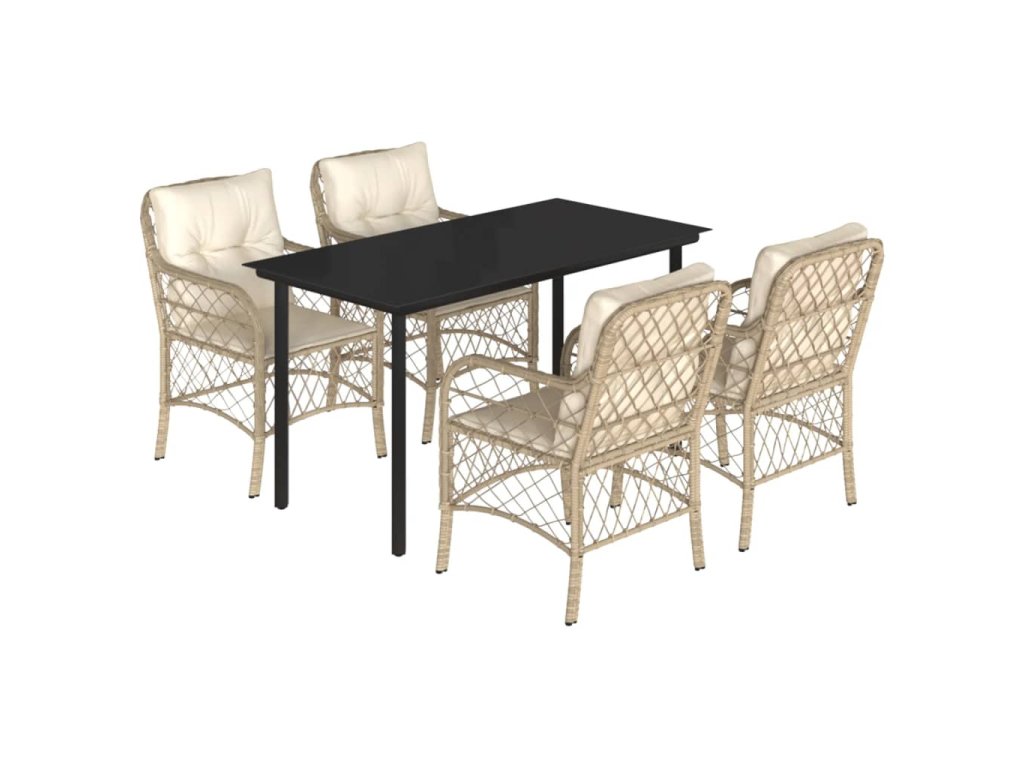 5dílný zahradní jídelní set s poduškami béžový polyratan 3212147