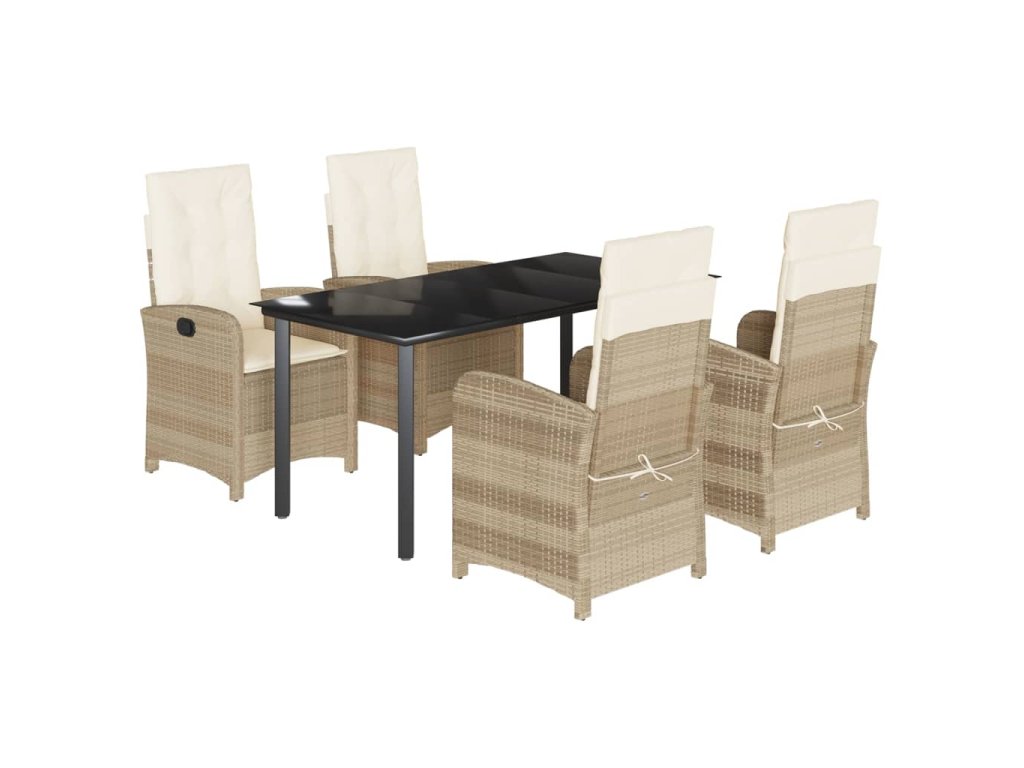 5dílný zahradní jídelní set s poduškami béžový polyratan 3212384