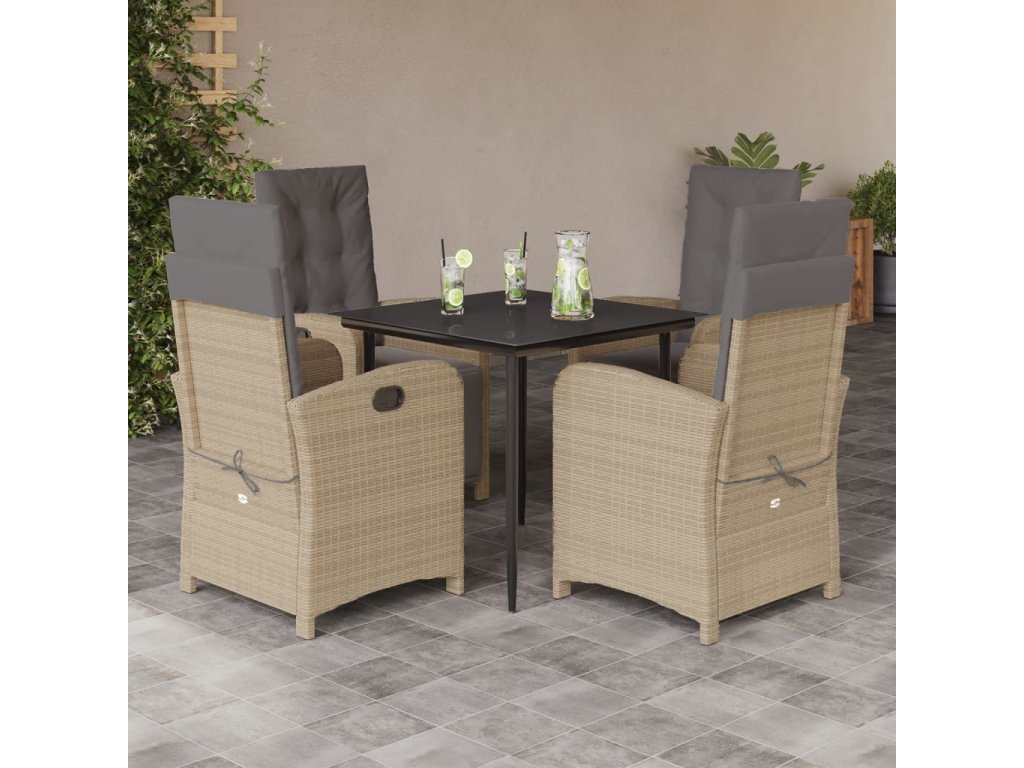 5dílný zahradní jídelní set s poduškami béžový polyratan 3212585
