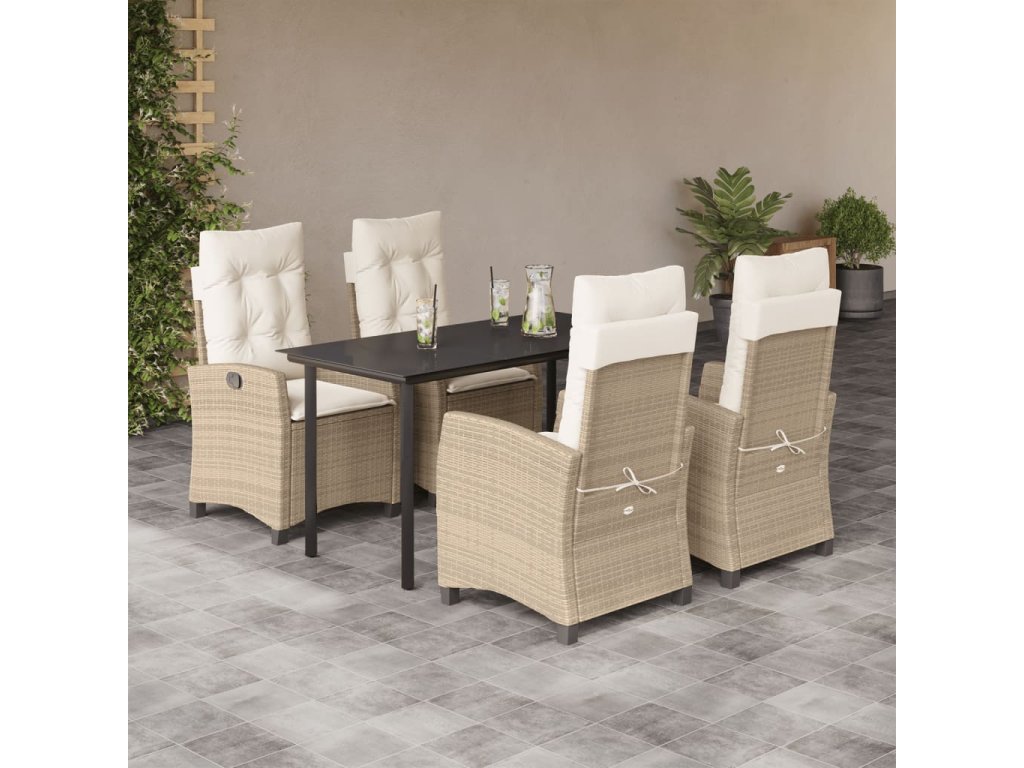 5dílný zahradní jídelní set s poduškami béžový polyratan 3212815