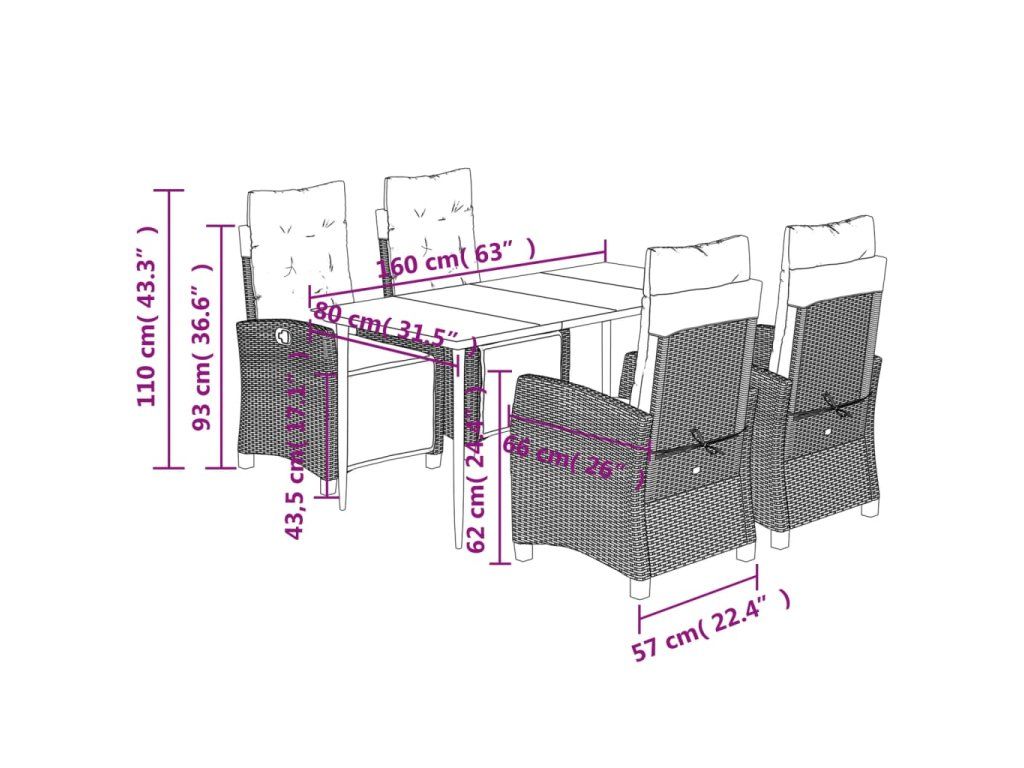 5dílný zahradní jídelní set s poduškami béžový polyratan 3213005