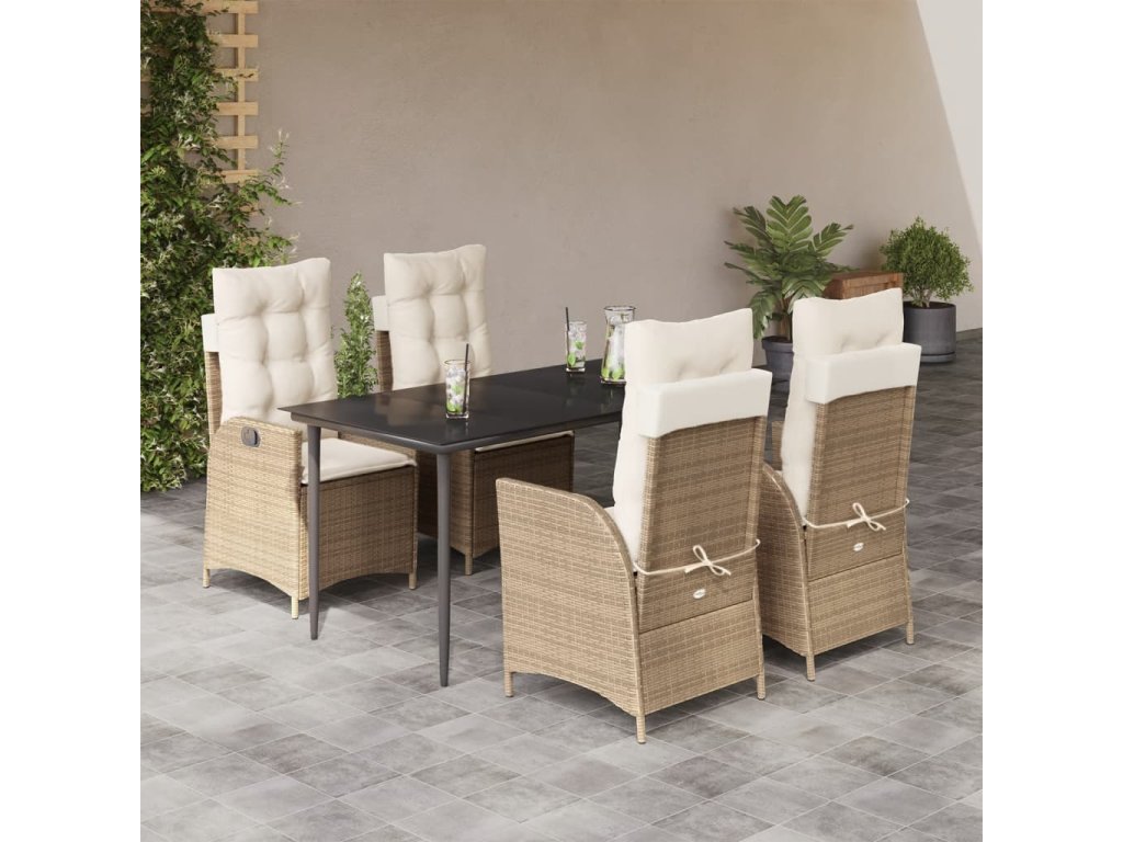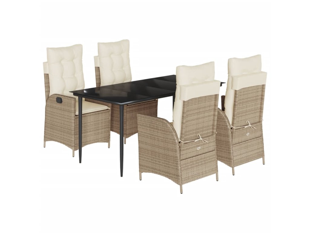 5dílný zahradní jídelní set s poduškami béžový polyratan 3213238