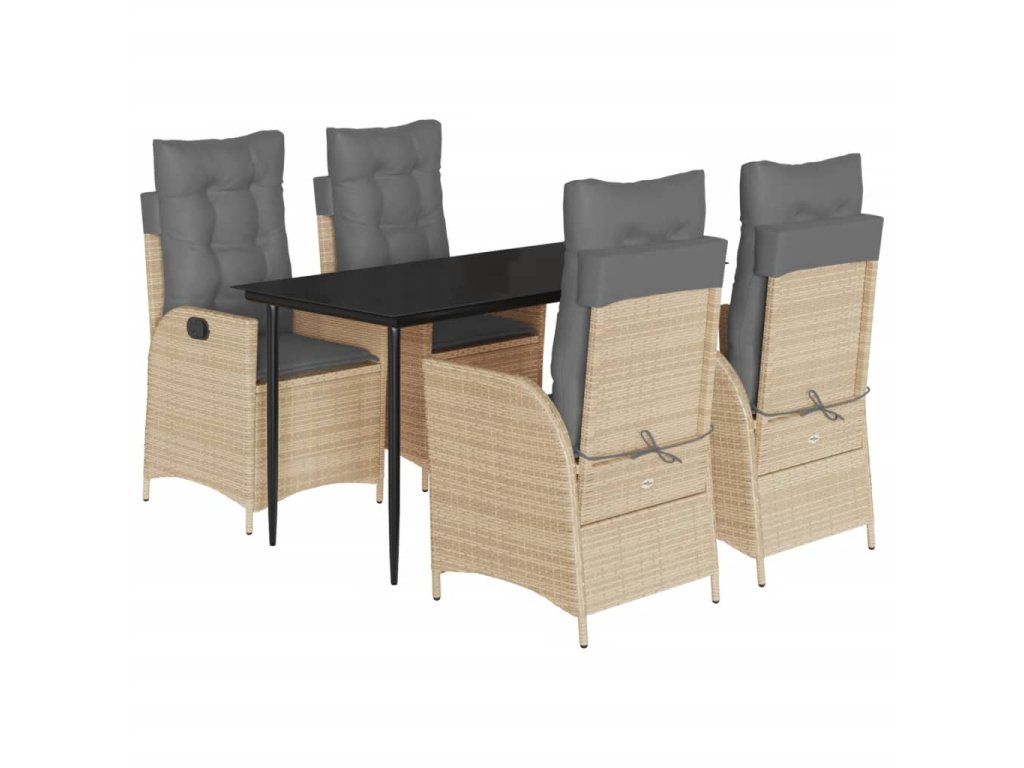 5dílný zahradní jídelní set s poduškami béžový polyratan 3213257