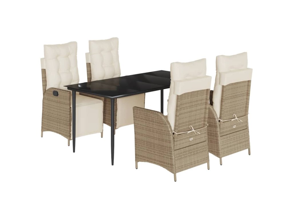 5dílný zahradní jídelní set s poduškami béžový polyratan 3213437