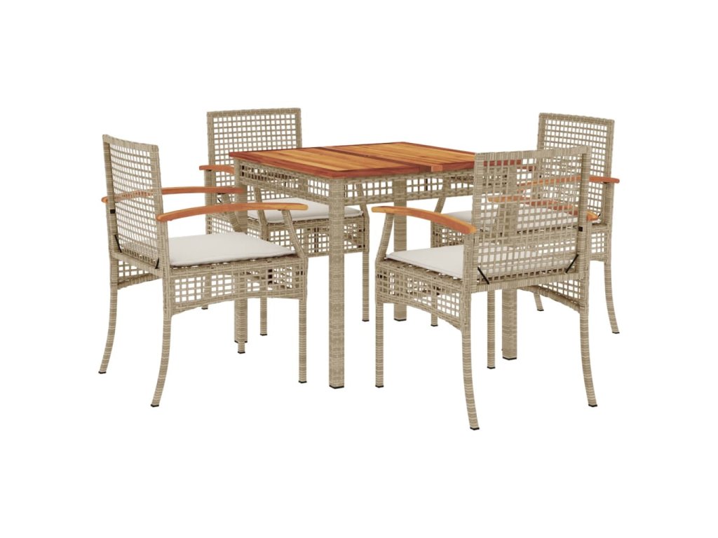 5dílný zahradní jídelní set s poduškami béžový polyratan 3213579