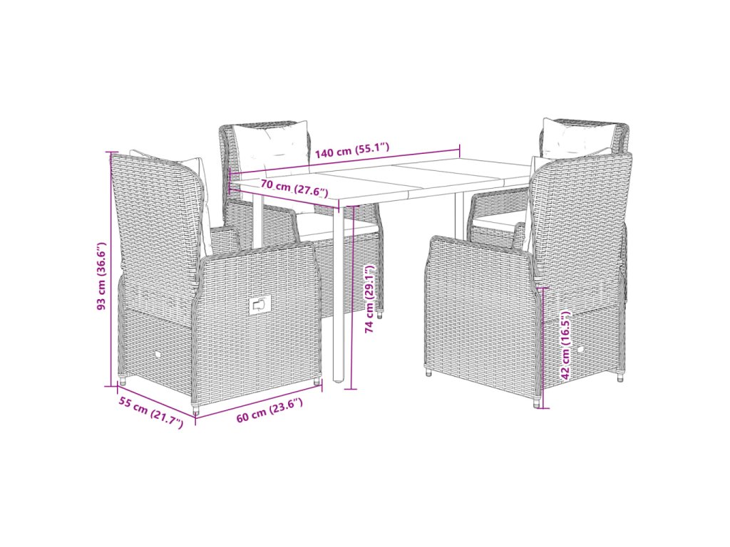 - Pohodlné sezení: Tento venkovní nábytek se silně polstrovanými poduškami a polštáři nabízí pohodlné sezení.