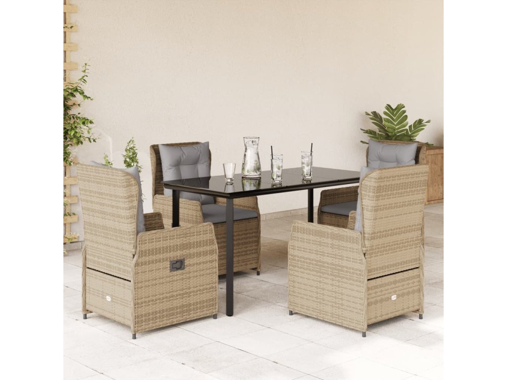 5dílný zahradní jídelní set s poduškami béžový polyratan 3262877