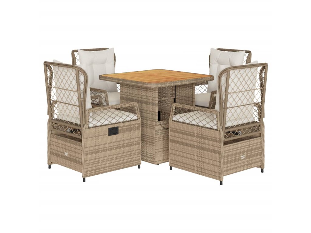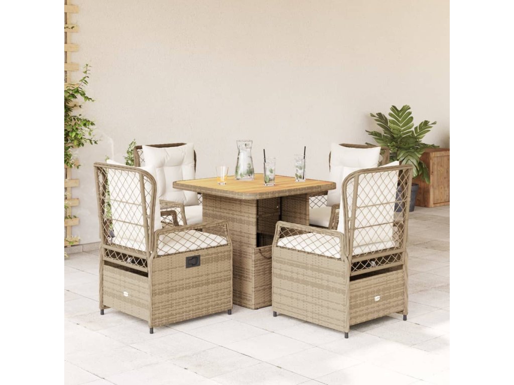 5dílný zahradní jídelní set s poduškami béžový polyratan 3262920