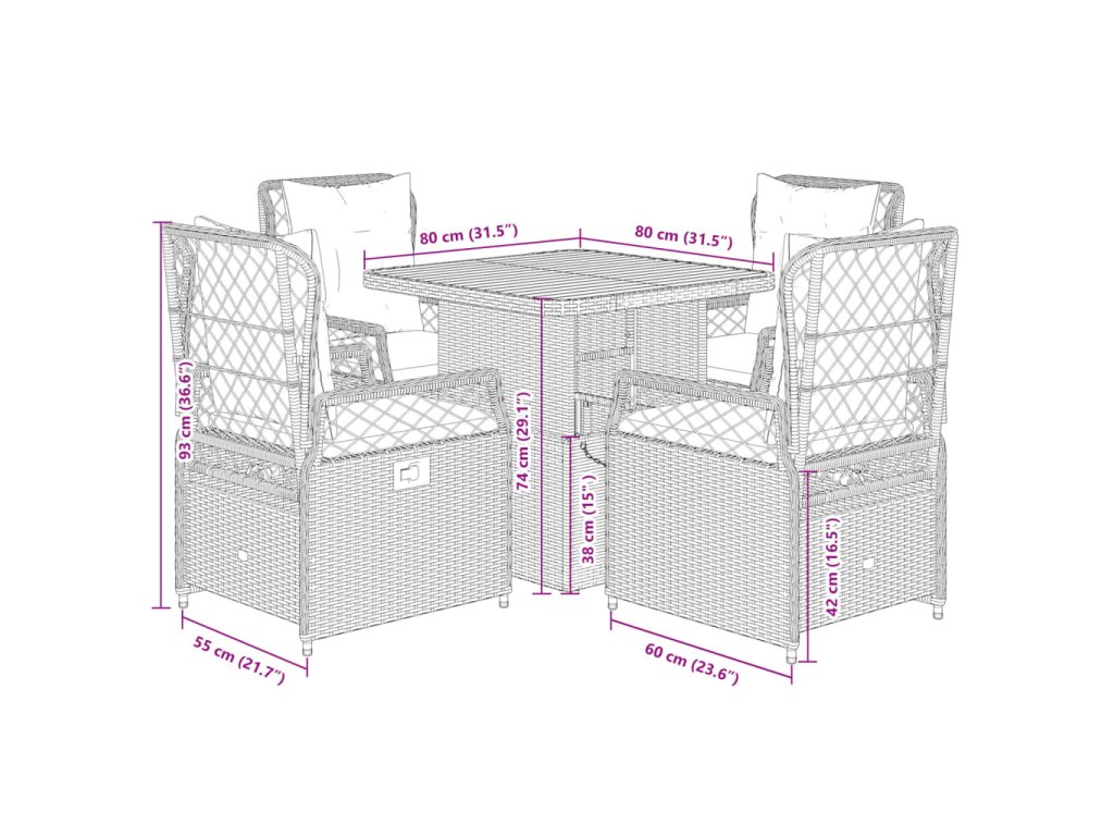 - Rozměry: 80 x 80 x 40/71 cm (D x Š x V)