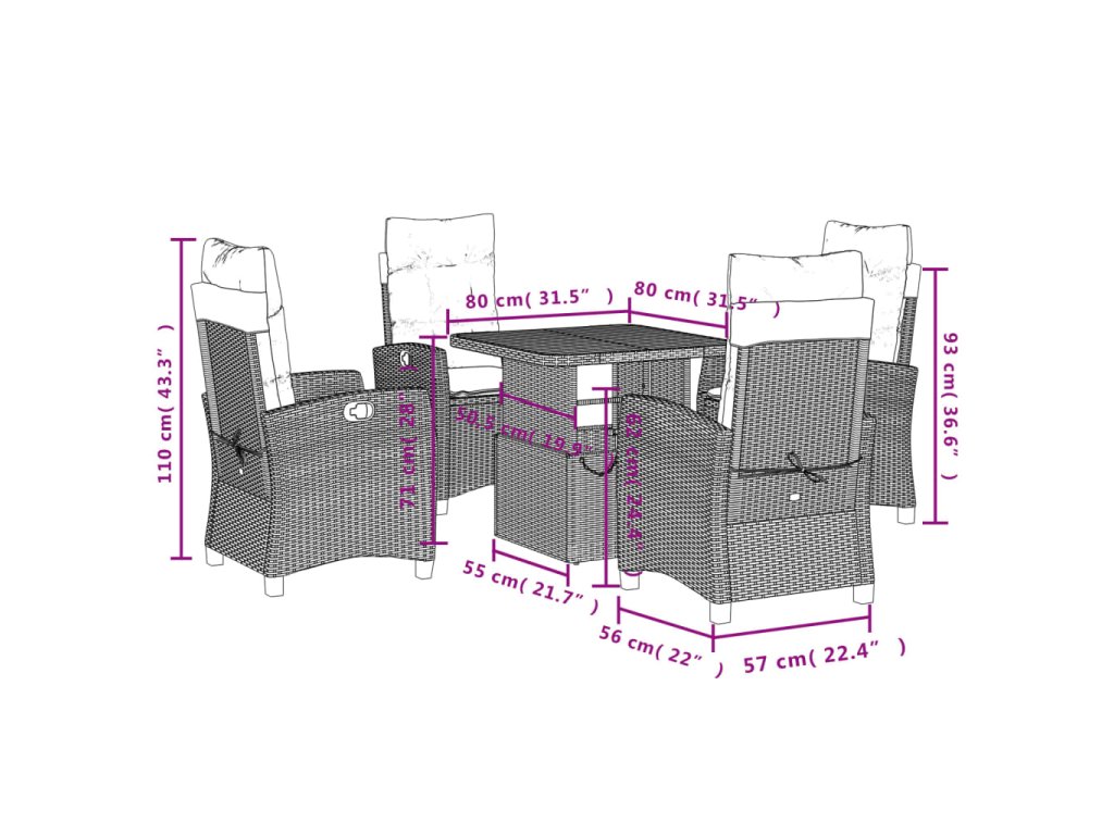 5dílný zahradní jídelní set s poduškami béžový polyratan 3277422