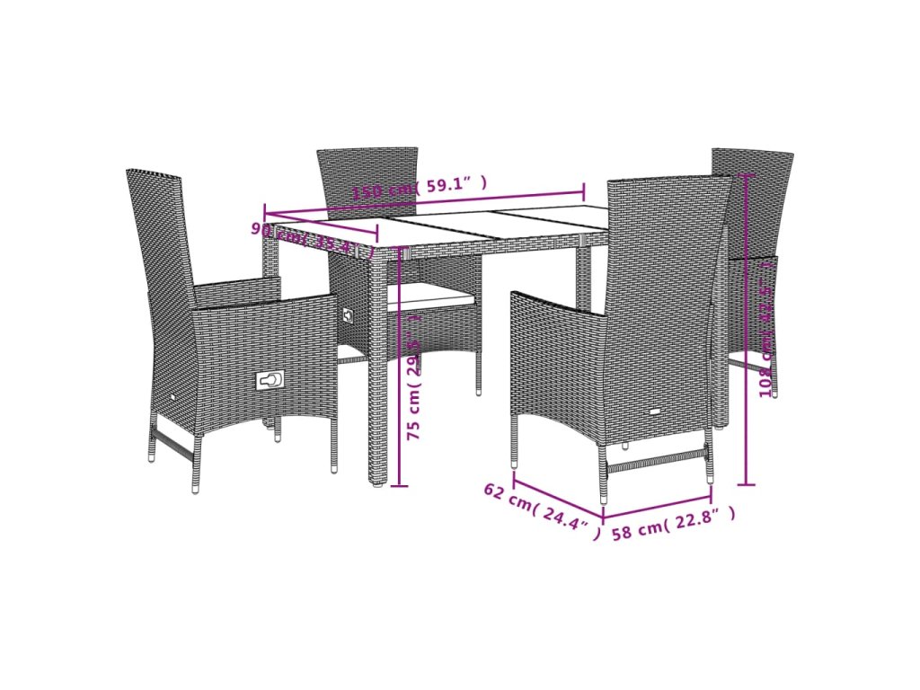 Tento zahradní jídelní set je skvělou volbou pro stolování pod širým nebem nebo jen tak pro odpočívání na zahradě, dvorku či terase.