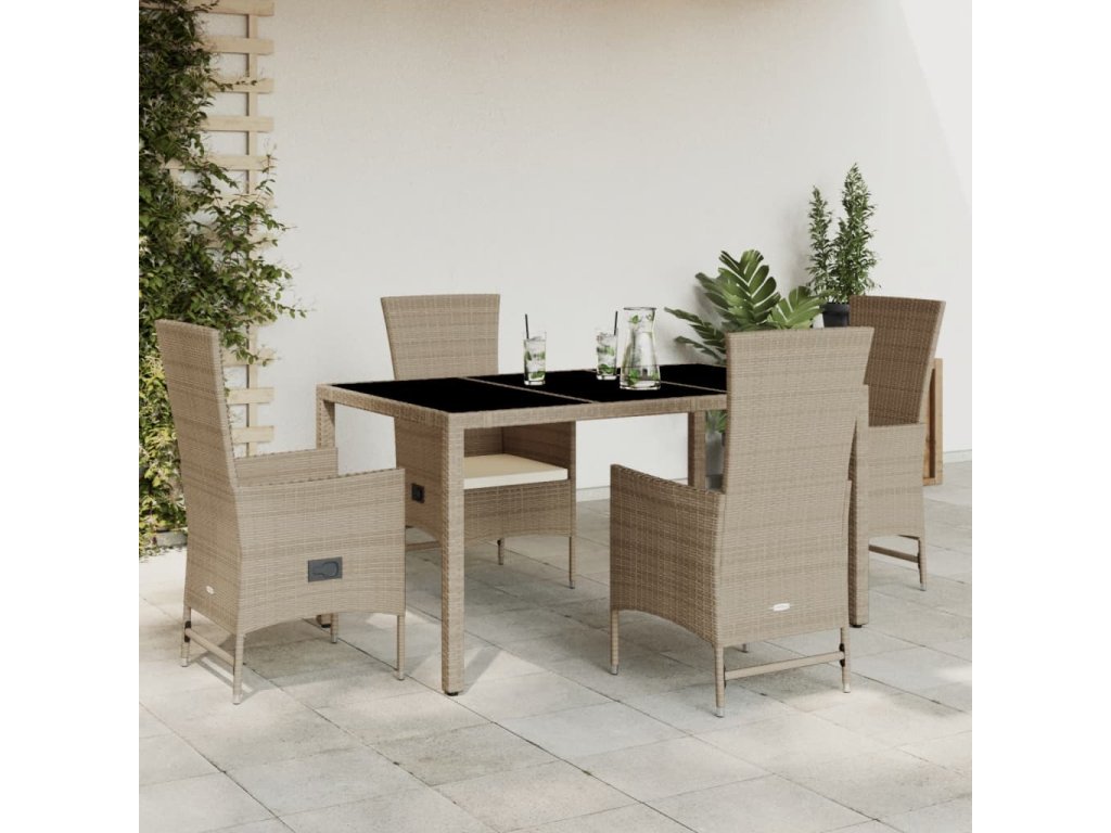 5dílný zahradní jídelní set s poduškami béžový polyratan 3277573