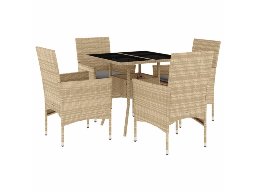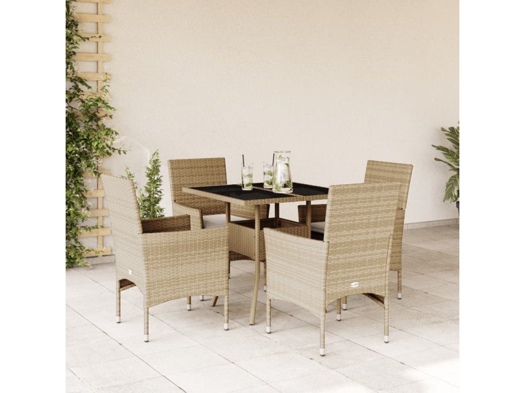 5dílný zahradní jídelní set s poduškami béžový polyratan a sklo 3278608