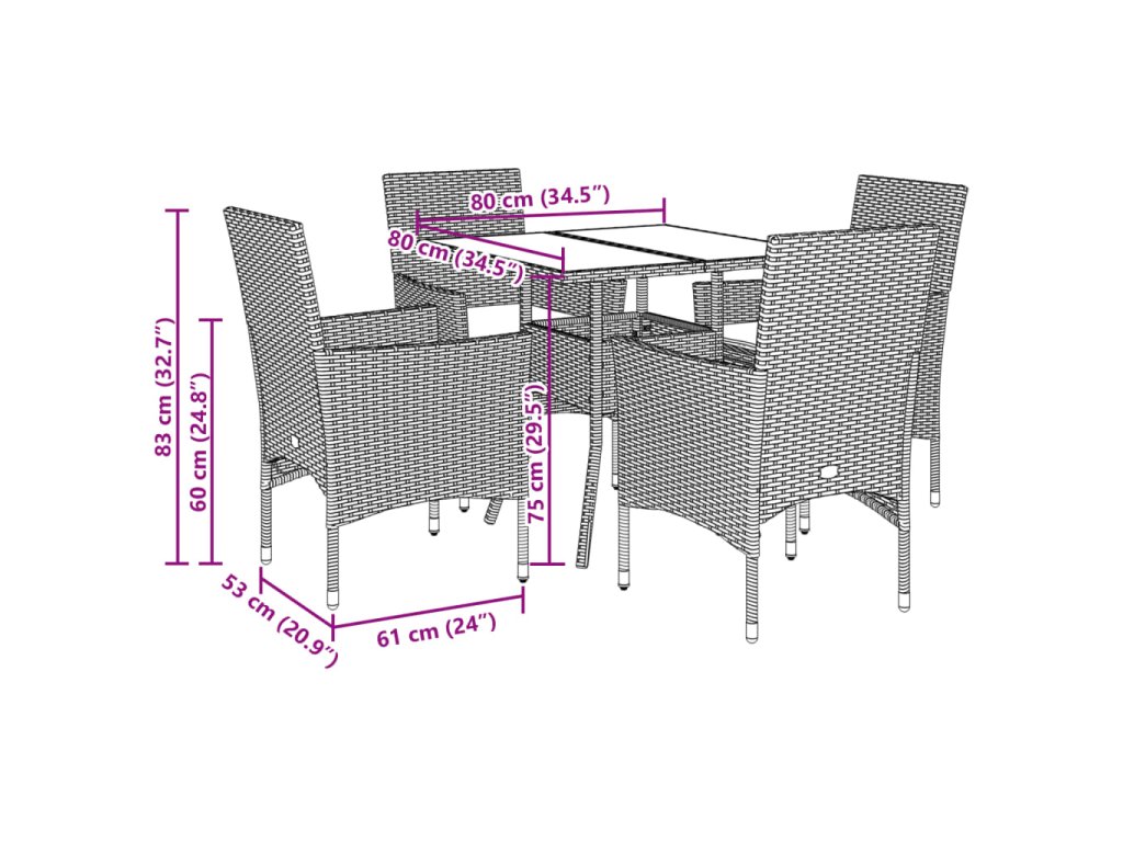 - Skleněná deska stolu: Deska venkovního stolu je zhotovena ze silného a odolného tvrzeného skla, takže ji snadno očistíte vlhkým hadříkem a zároveň do vašeho venkovního prostoru vnese nádech elegance.