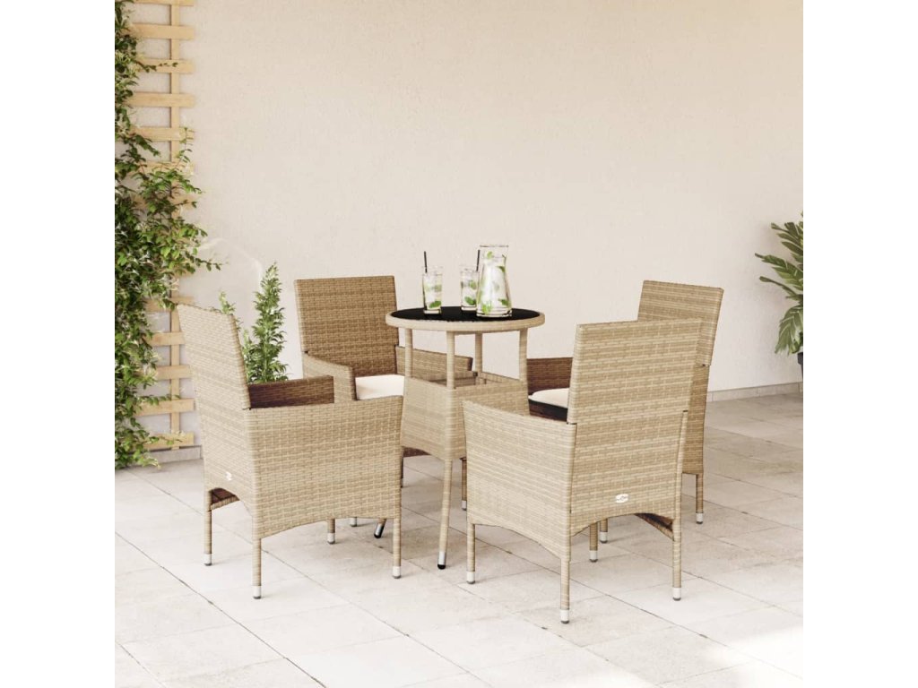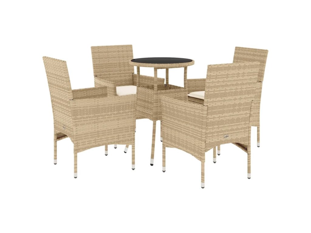 5dílný zahradní jídelní set s poduškami béžový polyratan a sklo 3278626